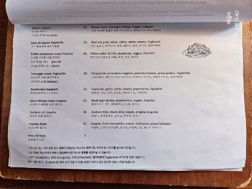 포스팅 초반에 서버분이 메뉴를 안 적어서 잘 못 나왔다고 했는데, 그 잘 못 나온 게 이 파스타입니다.