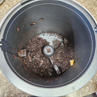 3리터를 꽉 채웠는데, 아침에 일어나 보니 이렇게 잘 처리가 되었더라고요. 처리물에서 냄새도 하나도 안 났어요. 성능 좋습니다👍👍 그대로 봉투에 담아서 일반쓰레기로 버려주면 됩니다. 오랜만에 이렇게 깔끔하게 음식물 처리기를 쓰니 얼마나 기분이 좋던지요!